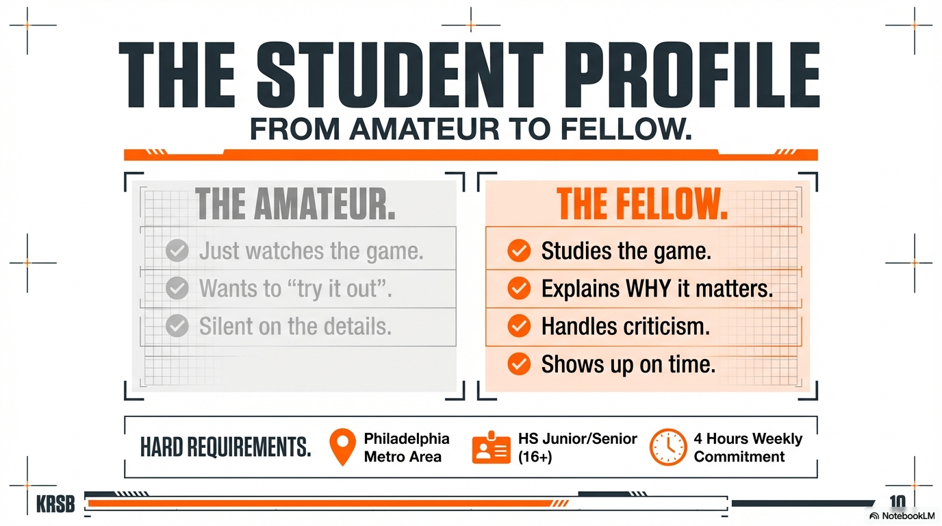 Your real-world launchpad. It’s a 12-week, tuition-free residency where Philadelphia high school juniors and seniors master sports broadcasting. Join the lineage.